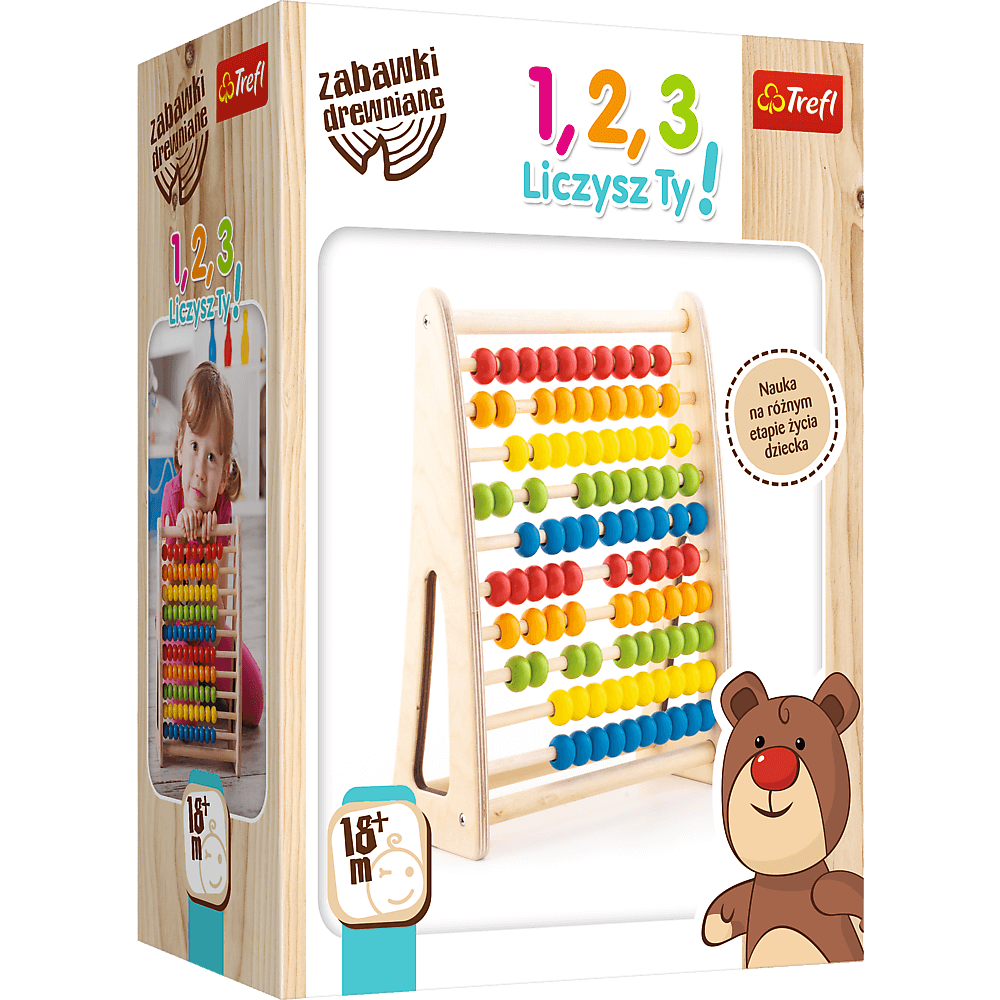 Ponadczasowe liczydło wykonane z jasnego, naturalnego drewna jest doskonałą zabawką ogólnorozwojową Znakomite rozwiązanie dla dzieci od 18 miesiąca życia Rozwija kreatywność i jest idealną zabawką do nauki cyfr od najmłodszych lat 1,2,3 Liczysz Ty! kształtuje umiejętności logicznego myślenia i koncentracji, a także wspomaga naukę nazywania kolorów i liczb dzięki przesuwanym, wielobarwnym koralikom Zabawka wzmacnia koordynację wzrokowo-ruchową, jak również wspomaga ćwiczenie zręczności czy umiejętności manualnych Wszystkie materiały wykorzystane do stworzenia zabawki posiadają atesty, a także zostały pomalowane nietoksycznymi farbami x
