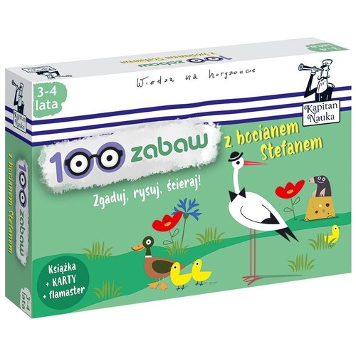 100 zabaw z bocianem Stefanem to wyjątkowy zestaw rozwijających zadań dla trzy- i czterolatków, który zapewni opiekunom i dzieciom wiele godzin wspólnej, angażującej rozrywki. Frapujące zadania przedstawione w książce i na 30 dwustronnych, zmywalnych kartach przybliżą dziecku świat przyrody, wzbogacą słownictwo i pobudzą dziecięcą wyobraźnię. Dzięki zabawom rozwijającym wiedzę o naturalnym otoczeniu dziecko odkryje również nowe obszary swoich zainteresowań.