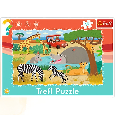 Kolorowe scenki z tropikalnego lasu, ogrodu, farmy i safari z pewnością zachęcą dzieci do układania. Dodatkowo rozwiną u nich takie umiejętności, jak: liczenie, rozpoznawanie kolorów, umiejętność kojarzenia, spostrzegawczość i dostarczą wiedzy o otaczającym je świecie.