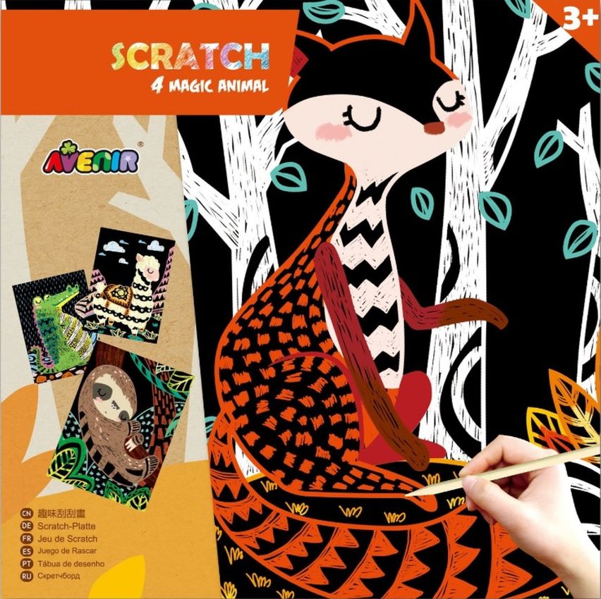 Opis produktuZasady bezpieczeństwaAvenir Scratch to zupełnie nowe podejście do prac ręcznych. Wyjątkowy arkusz, na którym tworzy się poprzez zdrapywanie warstwy wierzchniej, by odsłonić wielobarwną warstwę spodnią. Zabawka kreatywna najwyższych lotów, pozwalająca nie tylko tworzyć piękne prace, ale także dająca doświadczenia sensoryczne - dzięki użyciu odpowiedniego narzędzia i zachowywania się papieru podczas zabawy dziecko odbiera nowe wrażenia dotykowe. W zestawie są 4 magicne zwierzęta oraz patyczek do zdrapywania. Dla dzieci powyżej 3. roku życia. Opakowanie: 23 x 23 cm. x