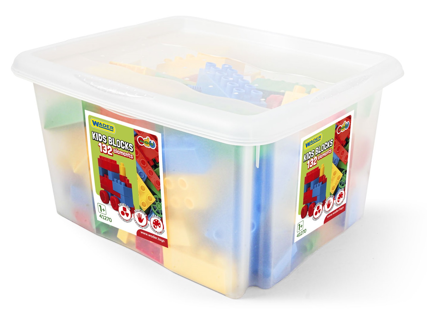 Zestaw 132 klocków charakteryzujący się możliwością tworzenia wielu ciekawych budowli.