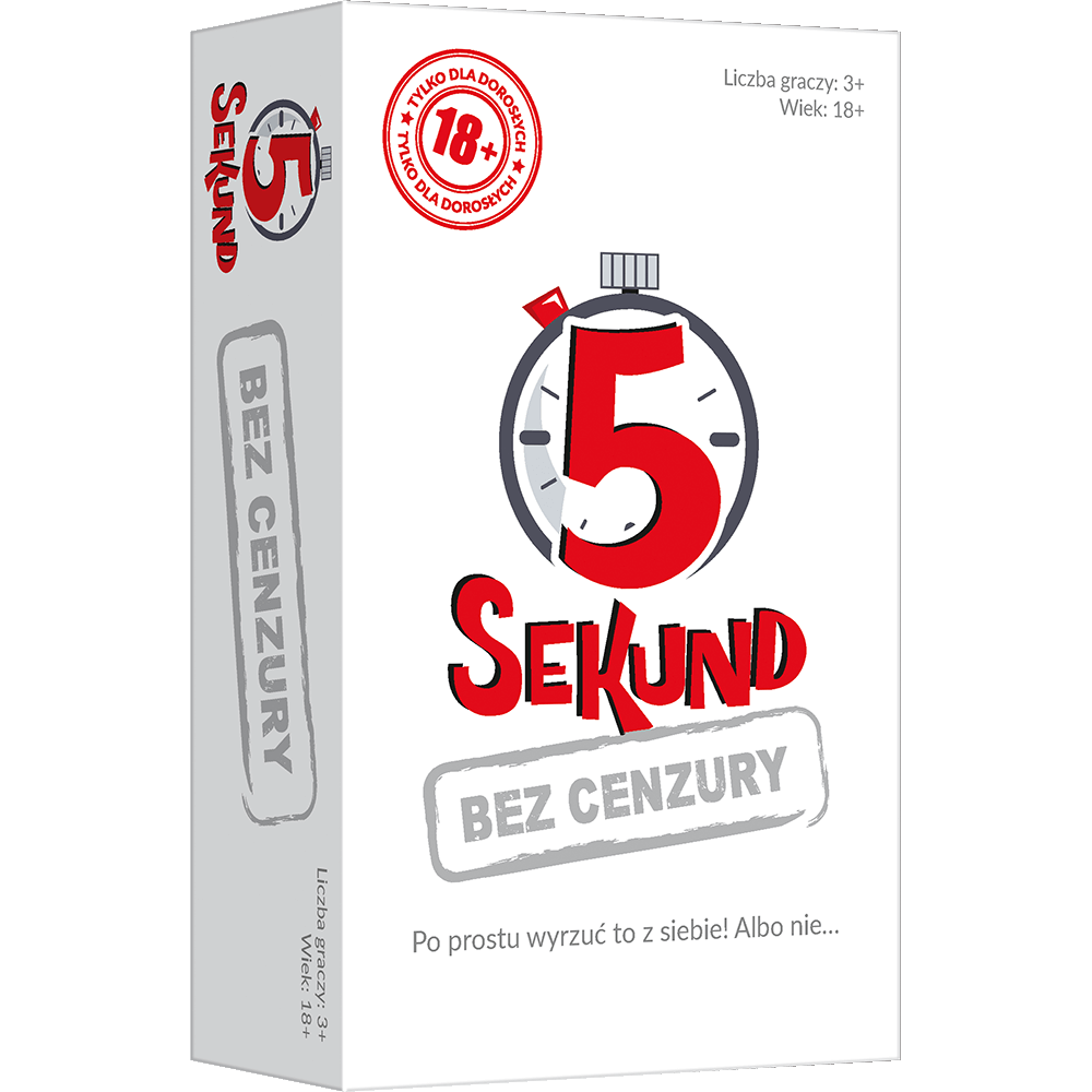 Opis produktuZasady bezpieczeństwaW grze pytania zostały przygotowane z myślą o pełnoletnich graczach, a odpowiedzi na nie obejdą się bez dwuznacznych aluzji. Wymienienie trzech zastosowań Twojego języka wydaje się z pozoru łatwe, ale czy potrafisz to zrobić w 5 sekund, gdy właśnie plącze Ci się język? Pozostali gracze bacznie Cię obserwują, z niecierpliwością oczekując Twojej odpowiedzi, a czas ucieka. Zawartość: 163 karty zawierające 326 pytań oraz 3 karty do pytań własnych, czasomierz, pudełko na karty, instrukcja. Liczba graczy: 3+ Wiek: 18+ x