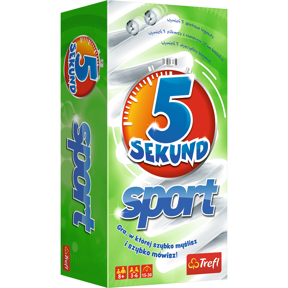 5 sekund Sport to tematyczna wersja bestsellerowej gry towarzyskiej 5 sekund. Z pewnością jesteś w stanie wymienić 3 turnieje piłkarskie - ale, czy uda Ci się to zrobić pod presją czasu?