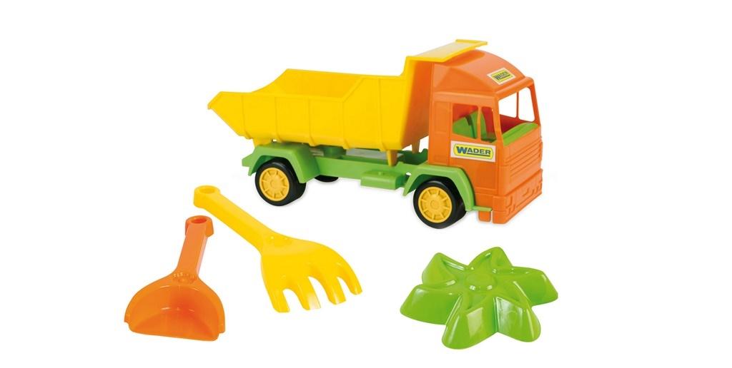 Samochód wywrotka posiada ruchomy kiper który pozwala rozwijać zdolności manualne i ruchowe.