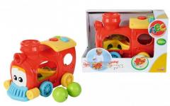 Kolorowa ciuchcia z kształtami, po naciśnięciu przycisku mruga oczami i jeździ.