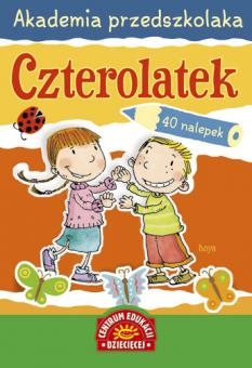 Akademia przedszkolaka. Czterolatek"" jest książką, w której każdy aktywny i kreatywny rodzic znajdzie wiele niepowtarzalnych pomysłów na atrakcyjne zajęcia ze swoim czteroletnim dzieckiem. Czterolatek to samodzielna osoba. Rozwój dziecka pomiędzy 4 a 5 charakteryzuje się ekspansją i żywiołowością. Dziecko dociera wszędzie, gdzie chce. W tym wieku potrafi rozróżnić kształty geometryczne i je odwzorować. Czterolatek przejawia przesadną pewność siebie, arogancję, a nawet jest wulgarny. Rodzice towarzysząc czterolatkowi w tym nieco zwariowanym okresie, mogą wybrać twórczą postawę, przeobrażając trudne cechy i umiejętności w coś produktywnego i pozytywnego. Ten wiek dziecka to czas fantazji i magii. Proponowane w ""Akademii czterolatka"" zabawy zachęcają do korzystania z wyobraźni i pomagają rozwiązywać różne problemy wychowawcze. To również okres zabaw ruchowych w kontakcie z rodzicami. Zabawa dziecka to jego podstawowa aktywność - to jego świat i jego sposób na poznawanie świata. A obserwacja rozwoju dziecka to nieprawdopodobna przygoda. Każda książka z serii akademii zawiera zadania i zabawy edukacyjne ściśle dopasowane do wieku dziecka. Wspomogą one rozwój dziecka, pobudzając zmysły, rozwijając percepcję wzrokową i spostrzegawczość, stymulując umiejętności manualne, kształtując rozwój ruchowy dziecka. Dołączony do każdej książki arkusz nalepek uatrakcyjni naukę i zabawę. Bawiąc się z dzieckiem w wieku od trzech do pięciu lat inwestujemy w jego rozwój i umiejętności w późniejszym wieku. A do zabawy możemy wykorzystać wszystko, co się tylko znajduje w najbliższym otoczeniu - nie tylko gotowe zabawki.