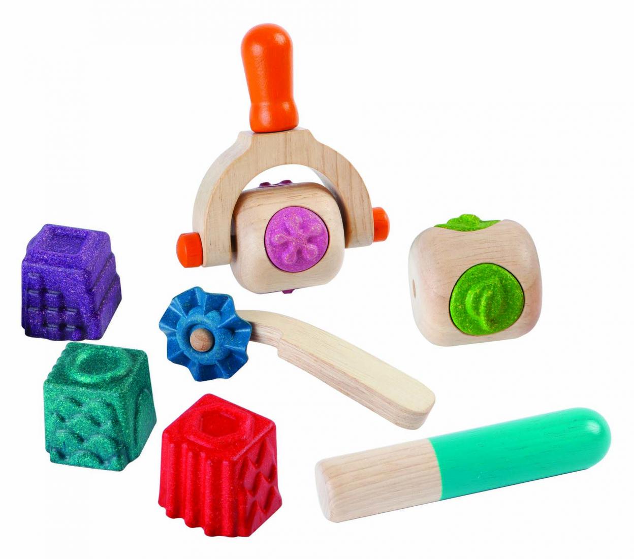 Zestaw foremek do odciskania, wycinania wzorów w masie ciasta solnego wyprodukowanego wspólnie z rodzicem. Producent dołącza w ulotce przepis na wykonanie takiego ciasta.