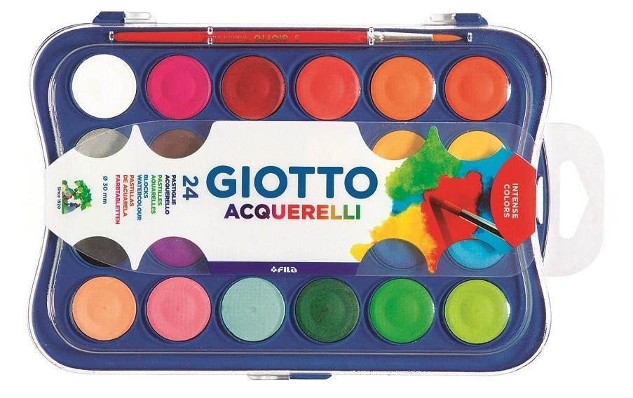Farby akwarelowe 24 kolory w zamykanej plastikowej kasetce.