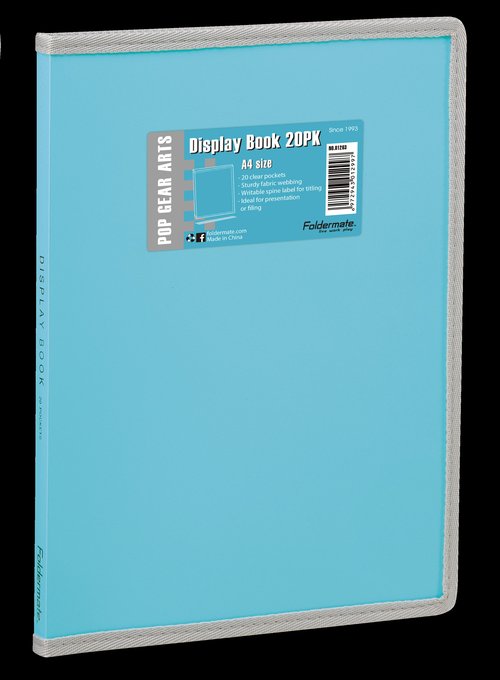 Album ofertowy A4, Błękitny o wymiarach 32 x 23,6 x 1,5 cm, brzegi pokryte wytrzymała taśmą z tkaniny. Etykietka na grzbiecie do opisania. Materiał Polipropylen.