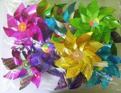 Kolorowy wiatraczek z plastikowym uchwytem.