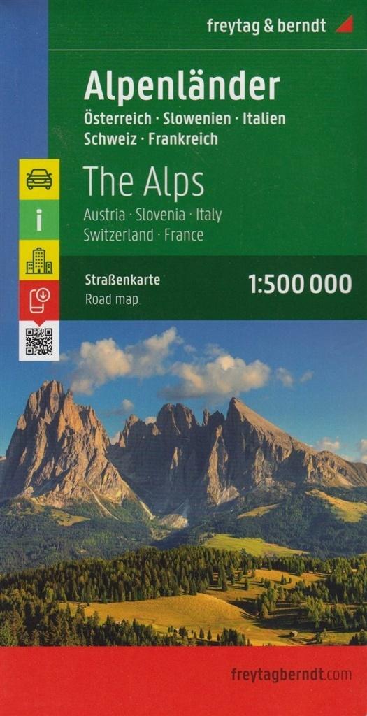Alpy - Austria Słowenia Włochy Szwajcaria Francja mapa drogowa 1:500 000