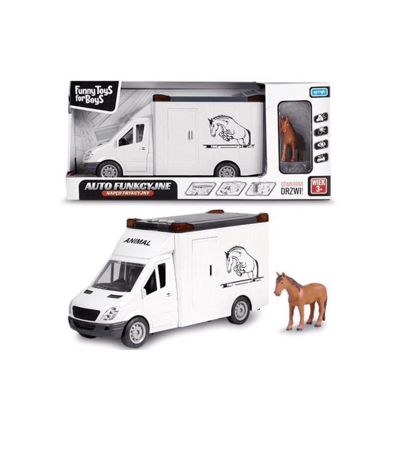 Długość: 26 cm, funkcje: napęd frykcyjny, światło, dźwięk, rykcja, otwierane wszystkie drzwi, w zestawie rozkładane nosze.