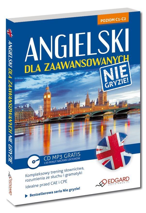 Kompleksowy trening słownictwa, rozumienia ze słuchu i gramatykiAngielski dla zaawansowanych Nie gryzie to kurs, z którym:- poznajesz zaawansowane słownictwo- ćwiczysz stosowanie najtrudniejszych zagadnień gramatycznych- trenujesz wymowę i doskonalisz rozumienie ze słuchu- rozwiązujesz różnorodne ćwiczenia- doskonalisz tworzenie wypowiedzi pisemnych różnych typówKurs przeznaczony jest dla osób, które chcą poznać język angielski na poziomie zaawansowanym (C1-C2). Jest idealną pomocą dla uczniów, studentów i wszystkich przygotowujących się do egzaminów językowych CAE i CPE.Książka (264 str.) opiera się na unikalnej metodzie aktywnej nauki, która dzięki licznym ćwiczeniom leksykalnym trenuje wszystkie cztery kompetencje językowe: słownictwo, trudniejsze konstrukcje gramatyczne, czytanie i rozumienie ze słuchu.W 17 rozdziałach znajdziesz ciekawe teksty pisane przez native speakera, zaawansowane zagadnienia gramatyczne, liczne ćwiczenia i testy, ciekawostki o kulturze anglosaskiej, a także informacje o niuansach języka angielskiego, takie jak: różnice między odmianą brytyjską a amerykańską czy językiem formalnym i nieformalnym. Dla ułatwienia nauki na końcu każdego rozdziału umieszczono praktyczny słowniczek.Do kursu dołączono płytę CD, na której znajdziesz 130 min nagrań w wykonaniu profesjonalnych lektorów (Brytyjczyka i Amerykanina).