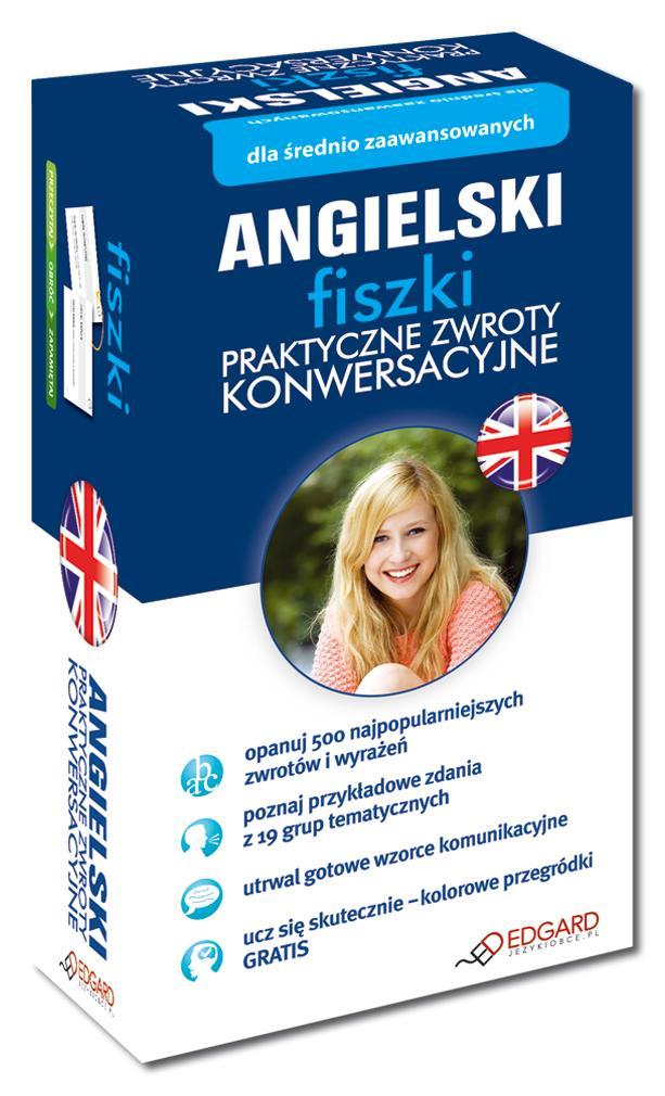 Dzięki nauce z fiszkami:- poznasz500 najpopularniejszych zwrotów i wyrażeń,- utrwalisz słówka i poznasz ich użycie w kontekście -przykładowe zdania,- szybko i skutecznie opanujesz słownictwo z19 grup tematycznych,- ćwiczysz język o każdej porze i w dowolnym miejscu,- opanujeszgotowe wzorce komunikacyjne.Angielski fiszki Praktyczne zwroty konwersacyjneto wyjątkowy zestaw500 ponumerowanych kartonikówdo nauki języka angielskiego. Przykłady użycia słów w zdaniu togotowe wzorce komunikacyjne. Aby ułatwić zapamiętanie materiału metodą skojarzeń, kurs podzielono na19 grup tematycznych.Nauka z kursem pozwala szybko i skutecznie opanować najczęściej używane w języku angielskim zwroty oraz poznać ich użycie w zdaniach. Specjalny dobór słówek, przykładowe zdania, kolorowe przegródki i załączone pudełko tworząunikalny zestaw do skutecznej nauki języka angielskiego.