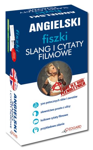 Dzięki nauce z fiszkami: - poznasz 430 wyrażeń slangowych i przykładowych zdań - nauczysz się słownictwa niezbędnego do spontanicznych wypowiedzi - poznasz 70 najsłynniejszych cytatów filmowych - zrozumiesz filmy i piosenki w języku angielskim ANGIELSKI fiszki SLANG I CYTATY FILMOWE to wyjątkowy zestaw 500 fiszek zawierających najważniejsze zwroty z języka potocznego i slangu. Wyrażenia zilustrowane przykładowymi zdaniami zawarte w fiszkach pomagają rozumieć żywy język angielski, który możemy usłyszeć na ulicy, wśród młodych ludzi lub w filmach. Wyrażenia pochodzą z różnych odmian angielskiego (brytyjskiego, londyńskiego cockney, amerykańskiego, australijskiego czy irlandzkiego). Zestaw haseł slangowych został uzupełniony 70 słynnymi cytatami z filmów angielskojęzycznych. Kurs podzielono na 16 grup tematycznych. Uwaga! Zestaw zawiera wulgaryzmy.