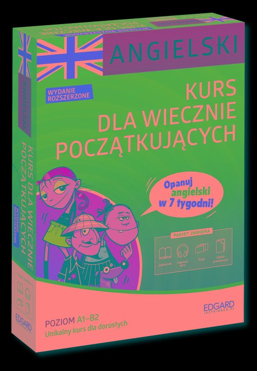 W książce znajdziesz materiał zaplanowany na 7 tygodni nauki, a także przydatny słowniczek angielsko-polski. Zróżnicowane lekcje, wzbogacone o nagrania profesjonalnych lektorów oraz ciekawe teksty na temat kultury brytyjskiej sprawią, że wciągniesz się w naukę angielskiego. W każdym tygodniu poznasz praktyczne słowa i niezbędne zwroty wraz ze zdaniami przykładowymi ilustrującymi ich użycie w praktyce oraz przydatnymi dialogami, jak również zagadnienia gramatyczne zgodne z poziomem zaawansowania lekcji, phrasal verbs oraz idiomy niezbędne do prowadzenia swobodnej rozmowy po angielsku na różnorodne tematy. Gdziekolwiek jesteś, szybko powtórzysz materiał, który do tej pory tak często ulatywał, dzięki dwóm zestawom fiszek oraz przejrzystym tablicom gramatycznym. A na koniec z zaskoczeniem odkryjesz, jak dużo już umiesz! Wydawnictwo EDGARD. Jako jeden z liderów segmentu językowego wyznaczamy trendy na rynku wydawniczym. Specjalizujemy się w publikacjach przeznaczonych do samodzielnej nauki języków obcych skierowanych do osób na każdym poziomie zaawansowania - zarówno do początkujących, jak też osób zaawansowanych, do pasjonatów i wielbicieli języków obcych. Wiemy, jak wspomagać wszechstronny rozwój i inspirować do poszukiwań nowych zainteresowań. Opieramy swoje działania o fachową wiedzę, skuteczną metodykę oraz bardzo cenne lata doświadczeń. Dzięki temu nieustannie rozwijamy i ulepszamy nasze produkty, by dostarczać coraz lepszych rozwiązań, zgodnych z potrzebami osób uczących się, ich zainteresowaniami oraz możliwościami. x