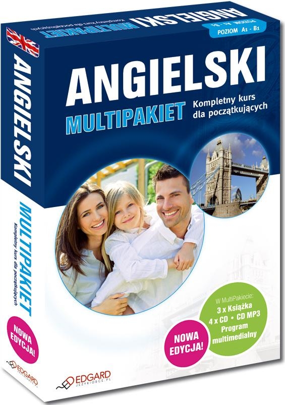Kompletny kurs dla początkujących - nauka słownictwa, pisowni, rozumienia ze słuchu i gramatyki - 6 godzin wysokiej jakości nagrań profesjonalnych lektorów - 3000 słów i zwrotów - niezbędnych na co dzień - gramatyka w pigułce - 9 czasów, które musisz znać - pełny zapis nagrań wraz z tłumaczeniami oraz ćwiczenia utrwalające - program multimedialny - nauka słówek, interaktywne ćwiczenia, samodzielny trening wymowy - różnorodne ćwiczenia z kluczem odpowiedzi - słownik komputerowy - 15 000 haseł Angielski MultiPakiet to unikalny kurs do samodzielnej i kompleksowej nauki języka angielskiego. Polecany jest osobom zaczynającym naukę oraz wszystkim, którzy chcą doskonalić językowe umiejętności, poszerzyć zasób słownictwa, poprawić wymowę i nauczyć się prowadzenia swobodnych rozmów z obcokrajowcami. Książki (łącznie 376 strony) zawierają zestawy słówek i niezbędnych zwrotów, ciekawe dialogi, praktyczne przykłady zastosowania wyrażeń w kontekście, ćwiczenia sprawdzające i utrwalające, dodatkowe słownictwo, pełny zapis nagrań wraz z tłumaczeniami, ciekawostki, popularne powiedzenia i testy. Nagrania profesjonalnych lektorów pozwalają osłuchać się z językiem, poznać prawidłową wymowę, a także ułatwiają zapamiętanie słówek i wyrażeń. Program multimedialny uczy nowych słówek i utrwala zdobytą wiedzę. Zawiera interaktywne ćwiczenia, gry, testy, doskonali umiejętność pisania, rozumienia ze słuchu. Dodatkowo słownik (15 000 haseł) pozwala sprawdzić znaczenie słów w dowolnym momencie. MultiPakiet oferuje unikatowy zestaw dwóch płyt z podstawami angielskiej gramatyki i czasami z ćwiczeniami do słuchania. Znajdziesz na nich: przystępne objaśnienie reguł, omówienie najważniejszych zagadnień, m.in. budowa zdania, tworzenie pytań, czasowniki nieregularne, 9 czasów, które musisz znać oraz liczne przykłady i ćwiczenia