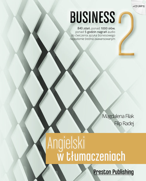 Nowa formuła nauki i innowacyjny sposób ćwiczenia języka. Druga z serii trzech książek do nauki słownictwa i porozumiewania się w języku angielskim w zakresie biznesu - poziom średnio zaawansowany (B1-B2).Książka zawiera 35 rozdziałów pogrupowanych według różnych tematów związanych z biznesem, np. marketing, advertising, negotiations, presentations, management, technology, itd. Każdy rozdział zawiera słowniczek oraz zdania do tłumaczenia wraz z odpowiedziami, dzięki czemu od razu możemy sprawdzić poprawność naszych zdań. Zawiera też wskazówki z cennymi informacjami na temat użycia, często popełnianych błędów, kolokacji oraz synonimów. Pozwala to na ćwiczenie języka biznesowego w mówieniu w zdaniach codziennego użytku, a zarazem sprawdzanie poprawności językowej.