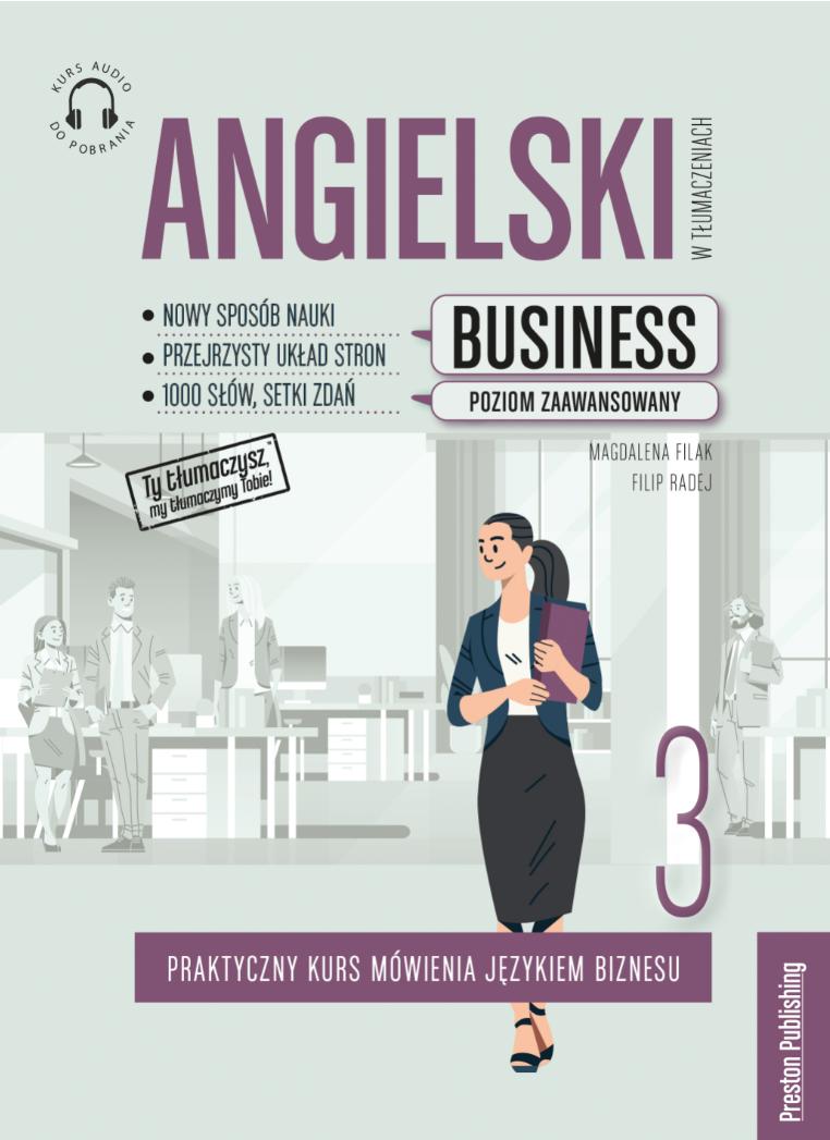 Podręcznik polecamy tym, którzy chcą poszerzyć umiejętności władania językiem angielskim i zacząć posługiwać się wyszukanym słownictwem oraz wyrażeniami używanymi w środowisku biznesowym. Przejrzysty układ książki zachęca do ćwiczeń, umożliwia sprawdzanie błędów oraz przyswajanie dodatkowej wiedzy. W książce znajdziesz ponad 1000 słów i ponad 800 przydatnych zdań oraz płytę CD (mp3).To, co wyróżnia podręczniki Angielski w tłumaczeniach. Business, to nowa formuła nauczania i innowacyjny sposób ćwiczenia sprawności językowej. Wszystko dzięki umiejętnemu użyciu rozwiązania stosowanego w rozmówkach, ale znacznie ulepszonego. Korzyść jest olbrzymia, ponieważ podręcznik w takiej postaci pozwala udoskonalać biznesowy język angielski naturalnie ? na przykładzie zdań i wyrażeń stosowanych w żywym, codziennym języku.Książka zawiera:35 rozdziałów tematycznych związanych z biznesem, np. finance, accounting, production, legal issues, logistics itd.,słowniczek (oddzielny dla każdego rozdziału),ponad 800 zdań i wyrażeń (zapisanych w języku angielskim i przetłumaczonych na język polski) stosowanych w biznesie,wskazówki na temat kontekstu użycia wyrazów i wyrażeń biznesowych,cenne informacje dotyczące synonimów oraz najczęściej popełnianych błędów,ćwiczenia konwersacyjne (na końcu każdego rozdziału),płytę CD (mp3) z ponad siedmiogodzinnym kursem audio, idealnym do ćwiczenia płynności mówienia oraz doskonalenia wymowy.Uwaga! Do nowych wydań książek nie są dołączone płyty CD. Nagrania mp3 można ściągnąć ze strony https://dopobrania.prestonpublishing.pl