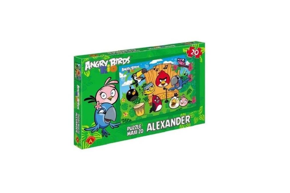 Puzzle firmy Alexander z ilością elementów 20 w wersji Maxi. Przestawiające obrazek z popularnej gry Angry Birds RIO. Wymiary obrazka to aż 67x47 cm. Puzzle wyprodukowane w Polsce. Puzzle rozwijają manualnie, pobudzają ciekawość, spostrzegawczość, zdolność kojarzenia.