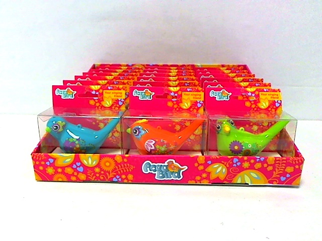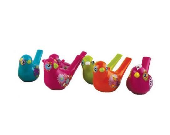 Ptaszek śpiewa różnymi barwami w zależności od pojemności wody i siły nadmuchu. Dmuchaj aby wydobyć czysty dźwięk na powitanie lub nalej wodę przez otwór znajdujący się na główce. Trzy wzory, dostępne w czterech kolorach: zielonym, pomarańczowym, turkusowym, różowym, wybierane losowo.