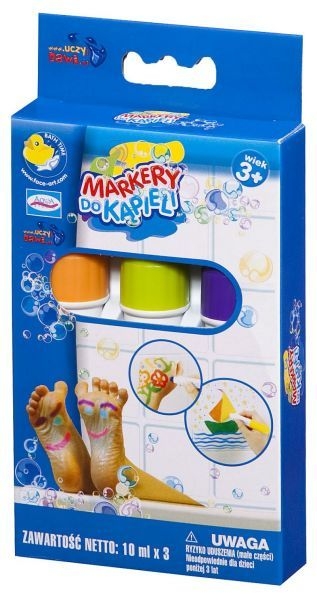 STUDIO AQUA TO SERIA WYJATKOWYCH ZESTAWÓW KREATYWNYCH DO ZABAWY W KĄPIELI. KREDKI , MARKERY I FARBY SĄ BEZPIECZNE I ŁATWO ZMYWALNE.Zestaw zawiera3 kolorowemarkerydo zabawy w kapieli. Kolory markerów : żółty , czerwony , niebieski.
