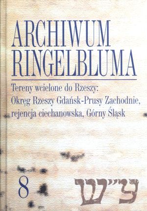 W tomie 8 Archiwum Ringelbluma Czytelnik znajdzie relacje dokumentujące życie Żydów na terenach wcielonych do Rzeszy: w Okręgu Rzeszy Gdańsk-Prusy Zachodnie, rejencji ciechanowskiej i na Górnym Śląsku. Zawarto w nim przede wszystkim relacje uchodźców, zmuszonych do opuszczenia swoich domów w pierwszych tygodniach wojny, oraz osób objętych akcją koncentracji Żydów w większych ośrodkach na terenach należących do Rzeszy i przesiedlania ich z tych terenów do Generalnego Gubernatorstwa. W większości relacje te dotyczą okresu od pierwszych dni wojny do lutego i marca 1941 r. W wielu dokumentach można spotkać wspomnienia sięgające okresu przedwojennego, krótkie szkice z historii opisywanych miast, czy relacje z przygotowań do wojny. Zdecydowana większość dokumentów i relacji publikowanych w tym tomie nie była wcześniej drukowana, ani nie znajduje swojego miejsca w dyskursie naukowym.