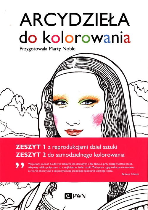 Kolorowanki i interaktywne zeszyty do ćwiczeń cieszą się obecnie ogromnym zainteresowaniem, nie tylko wśród dzieci. Odprężająca moc rysowania jako treningu antystresowego jest nieoceniona. Chcąc połączyć zabawę z nauką, Wydawnictwo Naukowe PWN proponuje swoim czytelnikom kolorowankę przedstawiającą 60 dzieł sztuki światowej: od Michała Anioła do Henriego de Toulouse-Lautreca. W prezentowanym wyborze artystów znaleźli się również tacy twórcy, jak: Rafael, Winslow Homer, Edward Hopper, Pierre-Auguste Renoir, Edgar Degas, Mary Cassatt, Paul Cézanne, Paul Gaugin, Edward Burne-Jones, Claude Monet, John Singer Sargent, Vincent van Gogh oraz 45 innych wielkich malarzy.