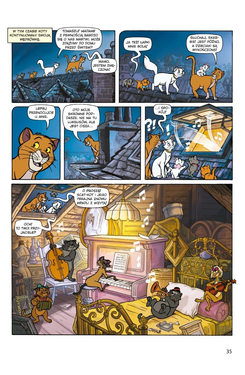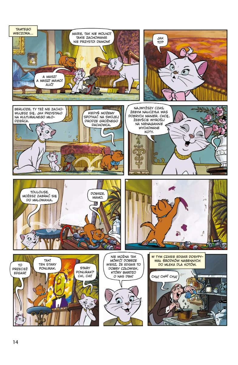 Opis produktuZasady bezpieczeństwaPrzeznaczona dla małych i dużych czytelników komiksowa adaptacja wspaniałej filmowej opowieści "Aryskotraci"! Duchessa i jej małe kocięta to oczka w głowie madame Adelajdy - eleganckiej i majętnej damy o wielkim sercu. Gdy jednak pani czyni je spadkobiercami swojego majątku, chciwy lokaj Edgar postanawia pozbyć się konkurencji. Na szczęście z pomocą kotom przychodzi czarujący dachowiec Tomasz O'Malley. Wspólnie wyruszą w drogę powrotną do domu - pełną przygód, zaskakujących spotkań i kociej muzyki! Komiks o miłości, która nie patrzy na pochodzenie, i muzyce, która potrafi połączyć najbardziej odległe światy. x