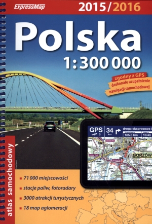 Planujesz samochodową podróż po Polsce? Zabierz ze sobą atlas ExpressMap będzie niezastąpionym towarzyszem wyprawy. Publikacja jest użyteczna zarówno dla zawodowych kierowców, jak i turystów podróżujących samochodem zaznaczono w niej także atrakcje turystyczne.Atlas zawiera:aktualny stan sieci drogowej, a także drogi w budowie i planowane do 2018 r.,365 tys. km dróg, autostrady i drogi ekspresowe z nazwami węzłów,krajową i międzynarodową numerację dróg,odległości drogowe,stacje paliw z podziałem na sieci,fotoradary,wybrane motele i hotele,3 tys. największych atrakcji turystycznych,granice parków narodowych i krajobrazowych,miejscowości atrakcyjne turystycznie,plastyczną rzeźbę terenu,skorowidz ponad 71 tys. miejscowości z terenu Polski wraz z informacją o województwie,18 tranzytowych map miast.