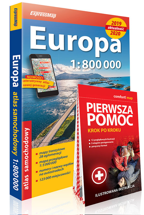 Atlas samochodowy Europa 2019/2020 +pierwsza pomoc