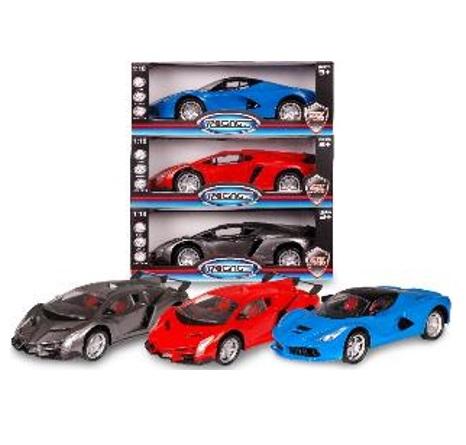 Opis produktuZasady bezpieczeństwaAuto na baterie, skala 1:18, światło, dźwięk, 3 kolory UWAGA! Wzór wysyłany losowo. x