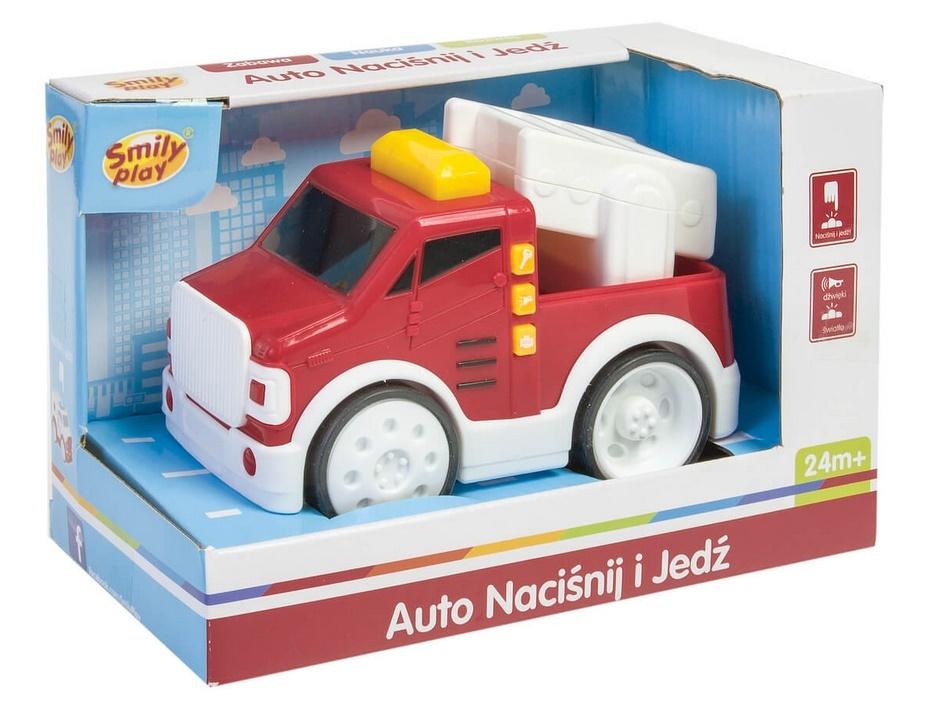 Opis produktuZasady bezpieczeństwaAuto Straż Pożarną można wprawić w ruch naciskając przycisk na dachu. Zabawka aktywizująca, zachęca dziecko do zabawy. Ma 3 przyciski funkcyjne. Każdy z przycisków to inny realistyczny dźwięk: odgłos silnika i dwa sygnały pojazdu uprzywilejowanego na drodze. Naciskając napis ""REV UP"" słychać mocne gazowanie pojazdu i zapala się kogut na dachu. Auto Straż Pożarna jest wykonana z solidnego materiału. Dziecko może ją zabrać wszędzie i cieszyć się zabawą w każdym miejscu. Zabawka rozwija umiejętności fizyczne dziecka oraz motywuje do ruchu przy czym dostarcza wiele frajdy podczas zabawy. • Naciśnij i jedź • Przyciski dźwiękowe • światło • Wymiary produktu: szer. 21 cm., wys. 13 cm., gł. 11 cm.• Baterie: 2 x AAA dołączone• Bezpieczeństwo: EN71-1, EN71-2, ENT1-3, EN62115 x