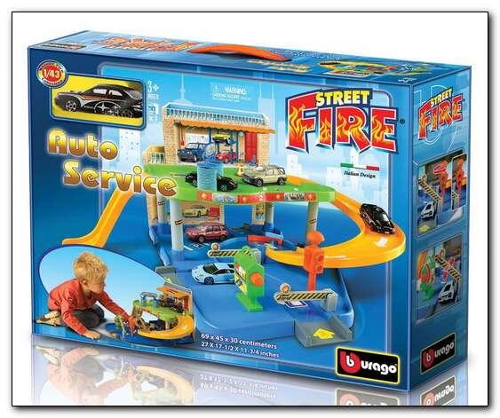 Na wyposażeniu garażu między innymi auto myjnia oraz dystrybutor paliwa. Zestaw zawiera jeden oryginalny metalowy model samochodu Bburago w skali 1:43 z kolecji Stret Fire i jest kompatybilny z wszystkimi modelami samochodów Bburago oraz Ferrari w skali 1:43. Zabawki dla dzieci Bburago to gwarancja wspaniałej i bezpiecznej zabawy. Wymiary zestawu po złożeniu: 69 x 45 x 30 cm. x