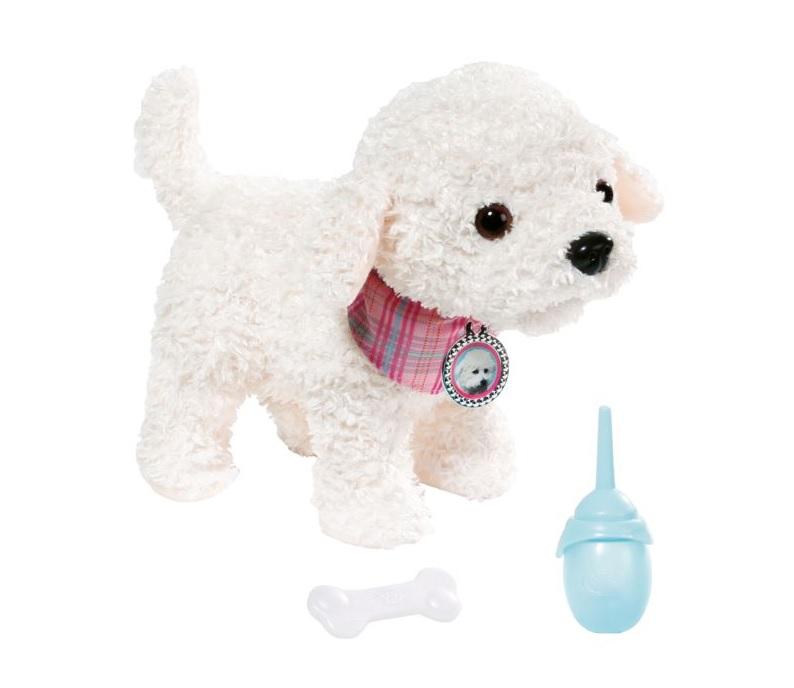 Baby born - Interaktywny Piesek to urocze, małe zwierzątko, które potrafi pić, sikać i jeść. Zestaw zawiera butelkę, plastikową gość i kołnierzyk z imienną zawieszką