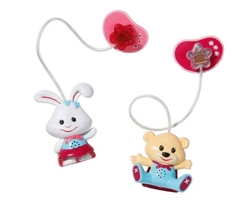 BABY born - Interaktywny smoczek z misiem to wspaniały dodatek do lalki Baby born. Smoczek, po naciśnięciu guziczka, miga ledowym, czerwonym światelkiem i wydaje dźwięk ssania. Smoczek zawieszony jest na uroczej broszce w kształcie misia.