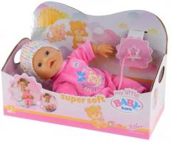 Lalka My Little Baby Born Supersoft skradnie serce każdej małej dziewczynki. Lalka jest słodziutka a jej miękki brzuszek sprawia, że miło się ją przytula. Dzięki niewielkim rozmiarom i wadze laleczka ta będzie idealna dla najmłodszych dzieci - już od pierwszego roku życia. Lalka ubrana jest w różowy pajacyk z ładną aplikacją oraz czapeczkę. Do zestawu dołączono smoczek.Wysokość lalki: 32 cmWiek: od 12 m-cy