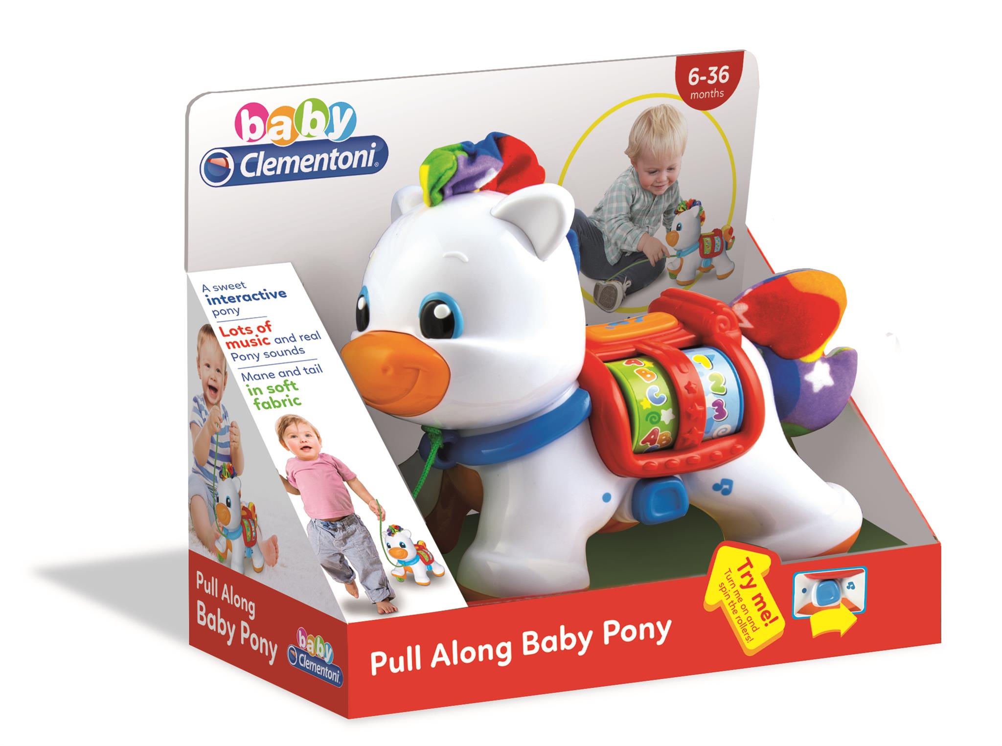 Naciśnięcie przycisku sprawi, że dzieci będą się śmiać z zabawnych efektów dźwiękowych. Gdy kucyk zostanie przesunięty, Twoje dziecko będzie cieszyć się słuchaniem szczęśliwych piosenek. 2 rolki uczą dzieci pierwszych liter i cyfr. Grzywę i ogon wykonano z miękkiego materiału, aby dzieci mogły rozwijać zręczność. x