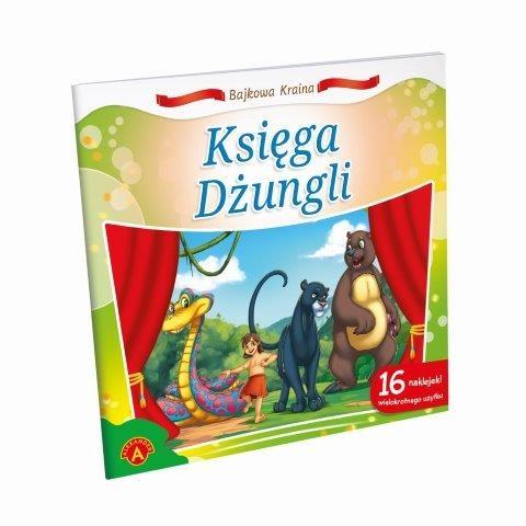 Książeczka z serii ""Bajkowa kraina"" to znane i lubiane bajki dla najmłodszych dzieci. W tej części bajka ""Księga Dżungli"". Bajecznie kolorowe ilustracje i umieszczony obok tekst to doskonała propozycja dla maluchów. Dodatkową atrakcją są dołączone do książeczki naklejki z postaciami z bajki ""Księga Dżungli"".