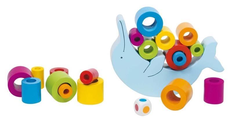 Gra zręcznościowa polegająca na układaniu kolorowych walców na delfinku, których kolejność wskazuje rzut kostką, tak aby całość się nie przewróciła.