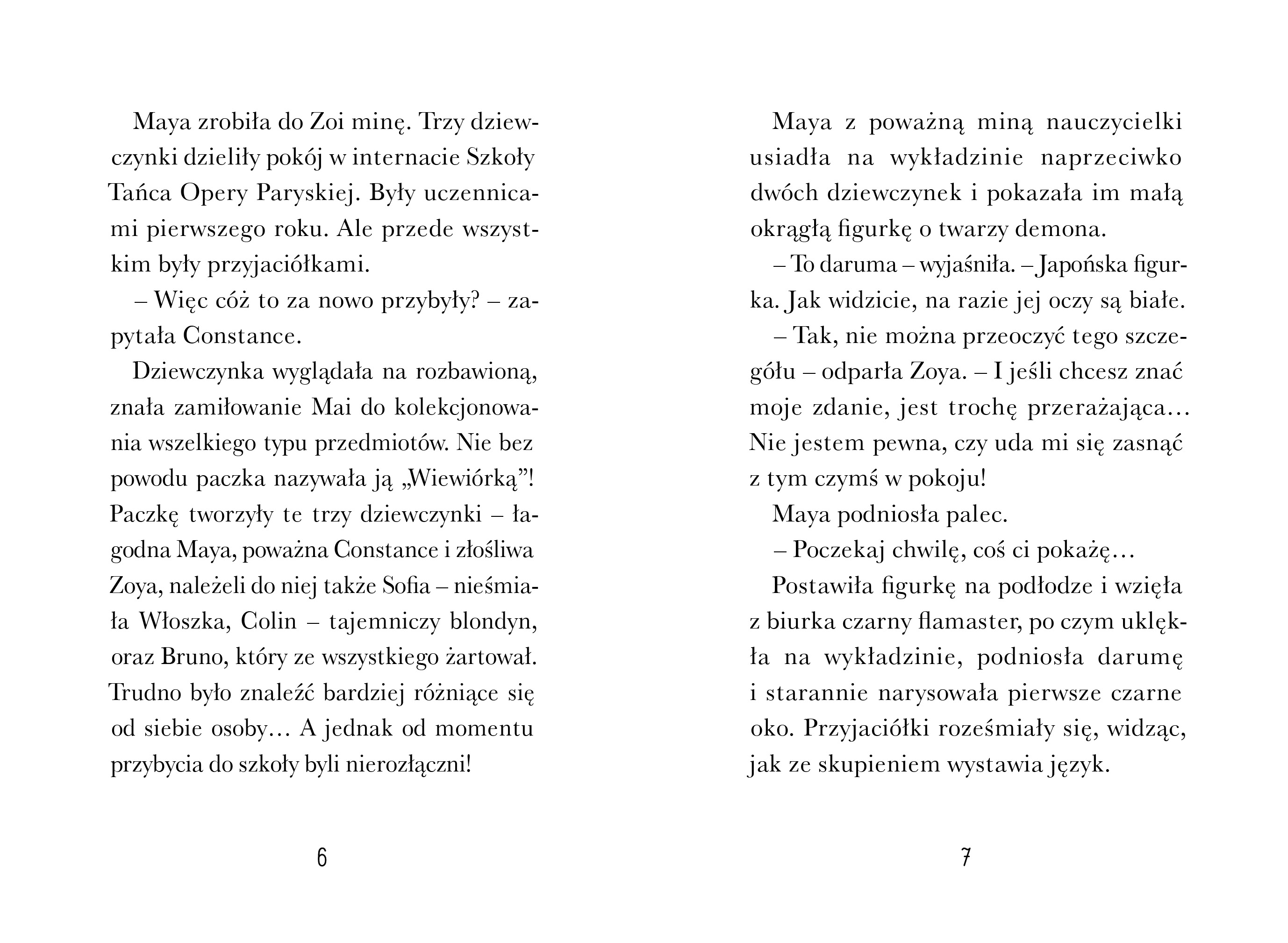 Wyjazd do Japonii!, Występ w teatrze w Kioto! te słowa nie schodziły z ust uczniów szkoły baletowej. Podróż do Kraju Kwitnącej Wiśni to nagroda za długie godziny poświęcone nauce tańca. Ale dla Mai jest czymś jeszcze szansą na spotkanie z Daisukem. Maya i Daisuke poznali się przez internet. Połączyło ich wspólne hobby kolekcjonowanie figurek. W pewnym momencie dziewczyna poczuła jednak, że z niecierpliwością wyczekuje kolejnych maili od kolegi. Może ich internetowa znajomość to coś więcej niż przyjaźń? Siódmy tom bestsellerowej francuskiej serii Baletnice o kulisach nauki baletu w elitarnej szkole przy Operze Paryskiej którą pokochały dziesiątki tysięcy dziewczynek. Ta książka pokaże Twojemu dziecku, że wrażliwość i pasja są siłą, która może wiele przezwyciężyć w pełnej uniesień i porażek walce o spełnienie marzeń. Wyjątkowe historie o dziewczynach i chłopakach z prestiżowej szkoły tańca w Paryżu, którzy muszą codziennie mierzyć się z rywalizacją, zazdrością i swoimi słabościami, by udowodnić, jak kochają balet. We Francji nieprzerwanie od 2016 roku ukazało się już 18 tomów! Sprzedano ponad 300 000 egzemplarzy! Poznaj dotychczasowe tomy serii: 1.Przyjaciółki i rywalki 2.Prawie idealna 3.W cieniu brata 4.Mała buntowniczka 5.Wschodząca gwiazda 6.Mimo wszystko 6+ Powyższy opis pochodzi od wydawcy x