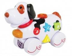 Interaktywna zabawka MUZYCZNY PIES przeznaczona jest dla dzieci powyżej 18 miesiąca życia. Aż 40 melodyjek wraz z migoczącymi przyciskami zapewni zarówno długą zabawę dziecku, a dzięki temu umożliwi rozwój zdolności wizualnych i słuchowych. Możliwość zmiany melodii poprzez naciskanie migoczących przycisków rozwija koordynację ruchową i zdolności manualne.