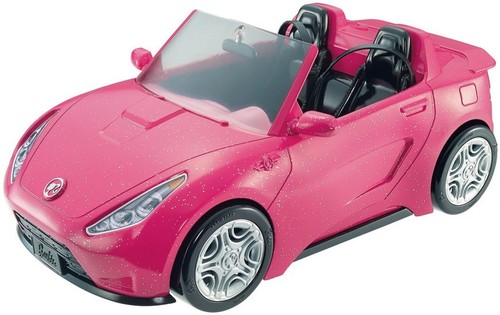 Udaj się w podróż kabrioletem Barbie® i przeżyj wyjątkowe przygody! Ten charakterystyczny dla stylu Barbie® dwumiejscowy samochód zaprojektowano w brokatowym różowym kolorze, a jego maskę ozdobiono dodatkowo symbolem Barbie®. To słodkie sportowe autko posiada dodatkowo tylny spojler i czarno-srebrne koła, które naprawdę się obracają. Nowoczesne wnętrze zaprojektowano w elegancikim czarnym kolorze z realistyczną tapicerką i pasami bezpieczeństwa dla lalek (lalki sprzedawane osobno). Popchnij kabriolet i ruszaj na wielką wyprawę, ponieważ z Barbie® wszystko jest możliwe! W zestawie ekskluzywny kabriolet Barbie®. Lalka nie znajduje się w zestawie.