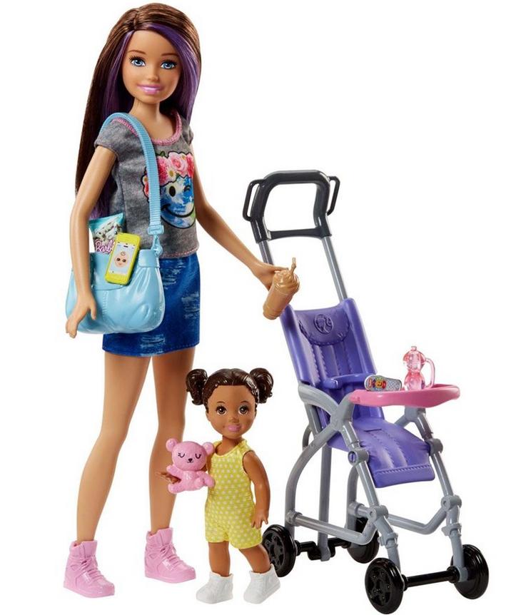 Lalka Barbie Opiekunka z dzieckiem i akcesoriami.