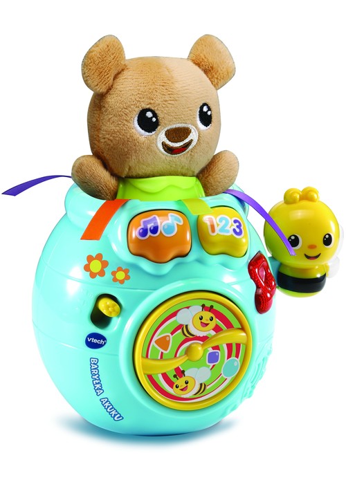 Poznaj pierwsze słowa z Baryłką Akuku od firmy VTech! Wystarczy nacisnąć jeden z dwóch przycisków na Baryłce, aby rozpocząć wspaniałą zabawę z mięciutkim Misiem.