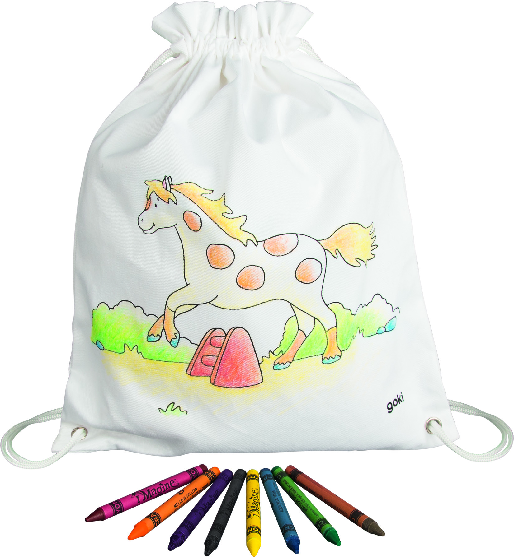 Bawełniany płócienny woreczek do kolorowania może przydać się na buty do przedszkola lub szkoły, na wycieczkę czy spacer.