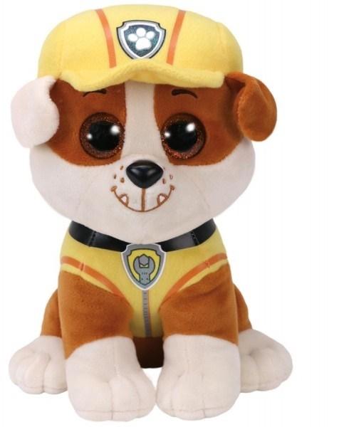 Zabawka pluszowa Beanie Boos Rubble - piesek z filmu Psi Patrol z błyszczącymi oczami. Rozmiar 24 cm.