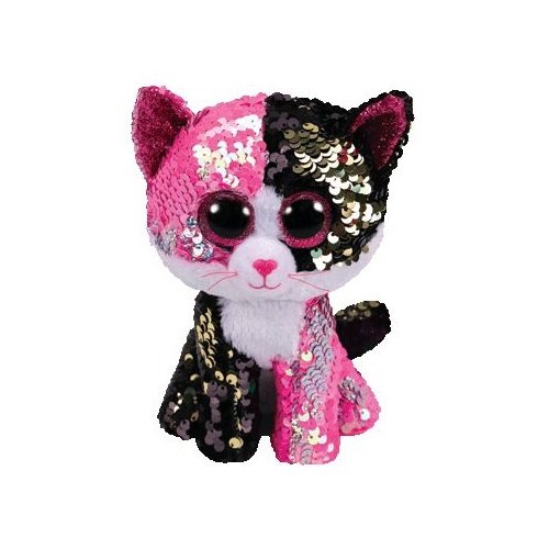 Pluszak ma błyszczące, brokatowe oczy oraz jest pokryty CEKINAMI