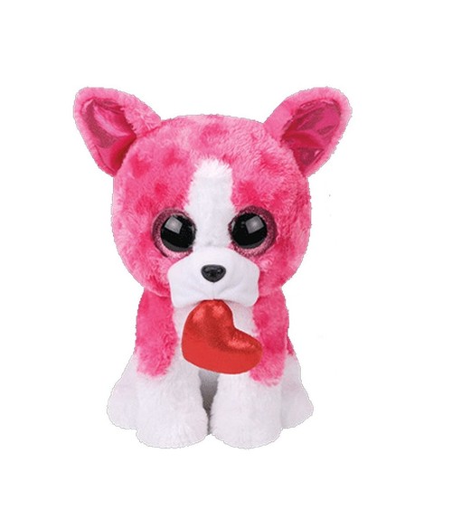 Zabawka pluszowa Beanie Boos Romeo - różowy piesek z błyszczącymi oczami. Rozmiar 24 cm.