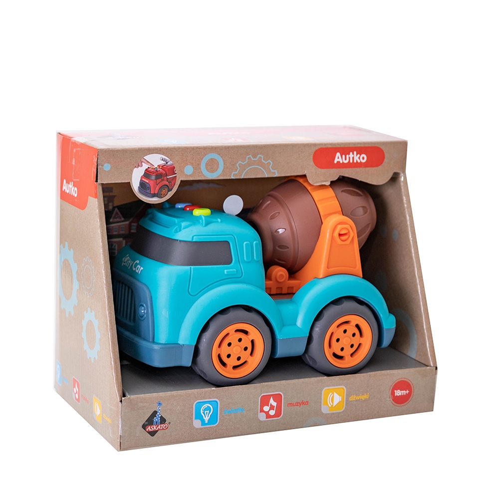Opis produktuZasady bezpieczeństwaBetoniarka ze światłem i dźwiękami. Wymagane baterie - 3 x AG13 (dołączone). x
